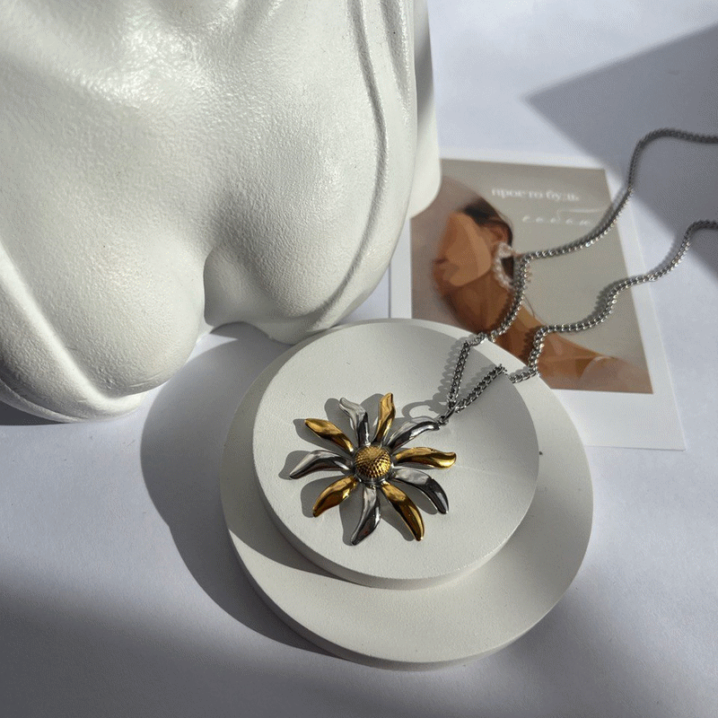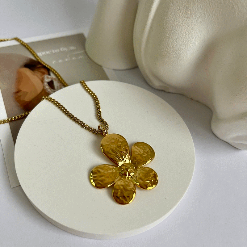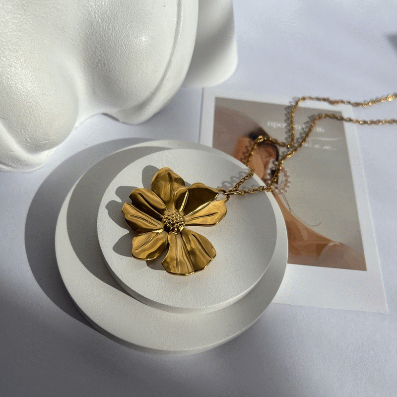 Підвіска квітка велика сталева в позолоті на довгому ланцюжку