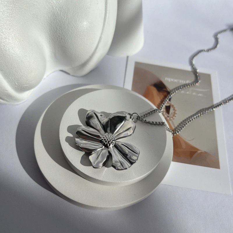 Підвіска квітка велика сталева на довгому ланцюжку
