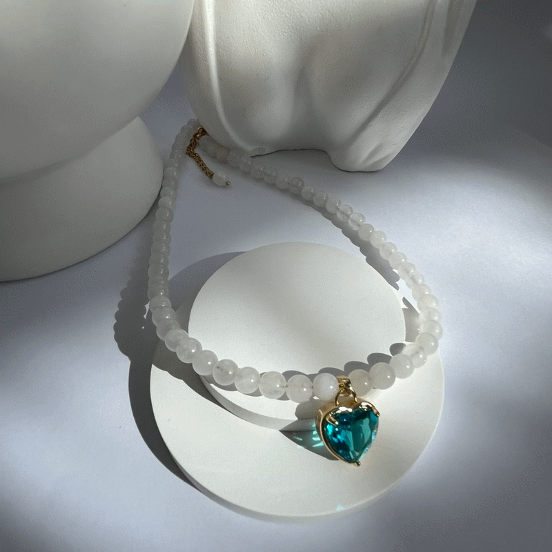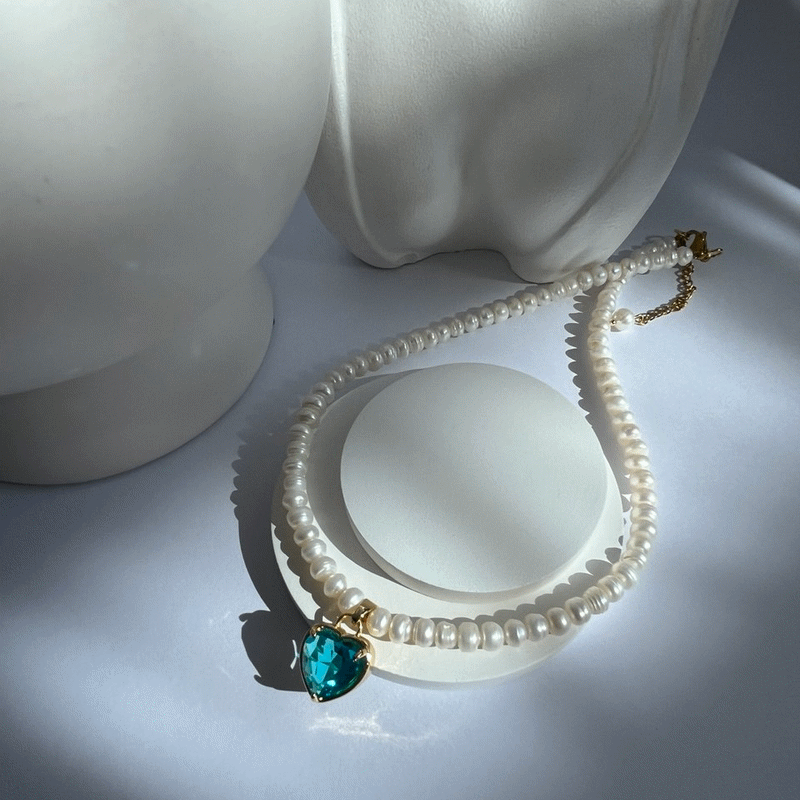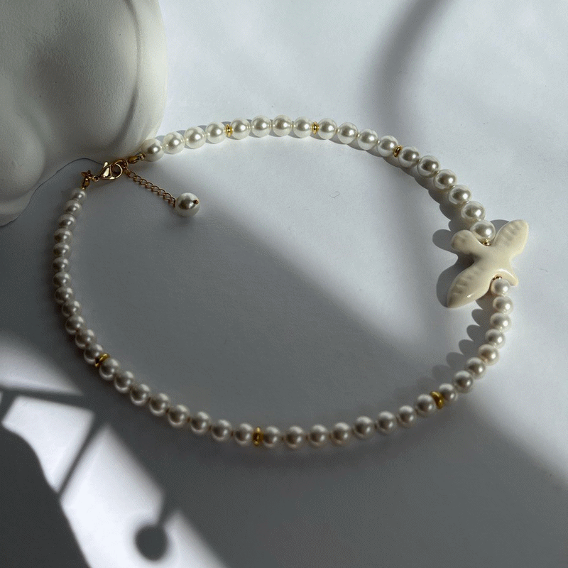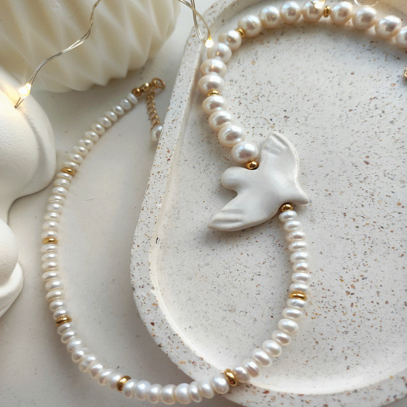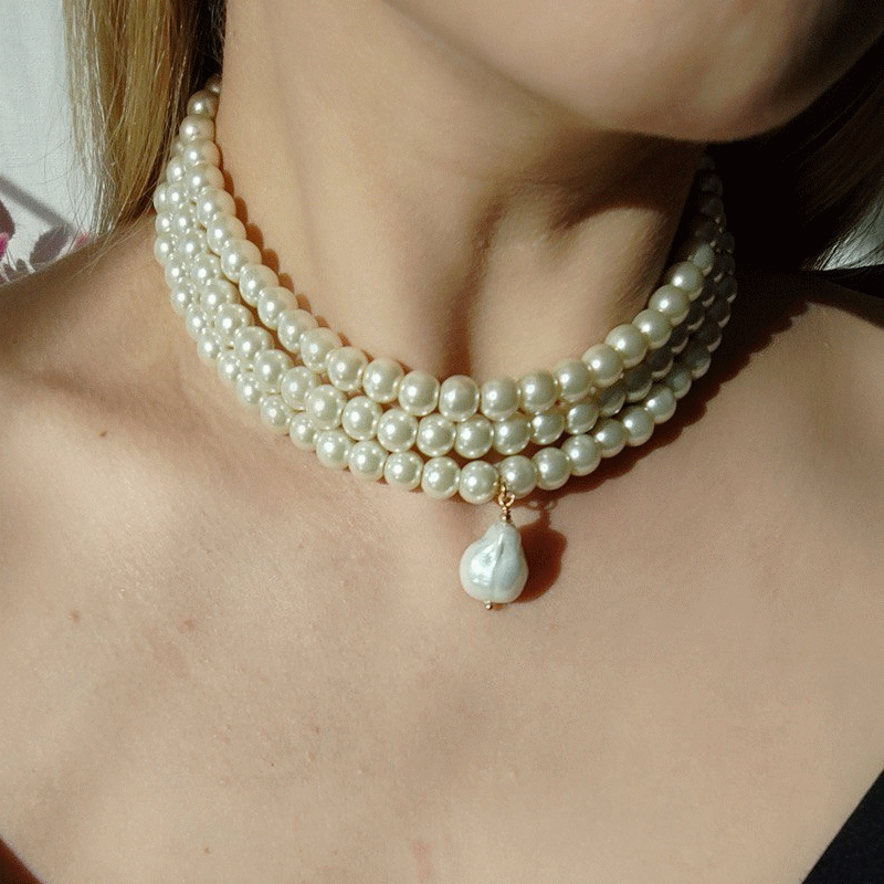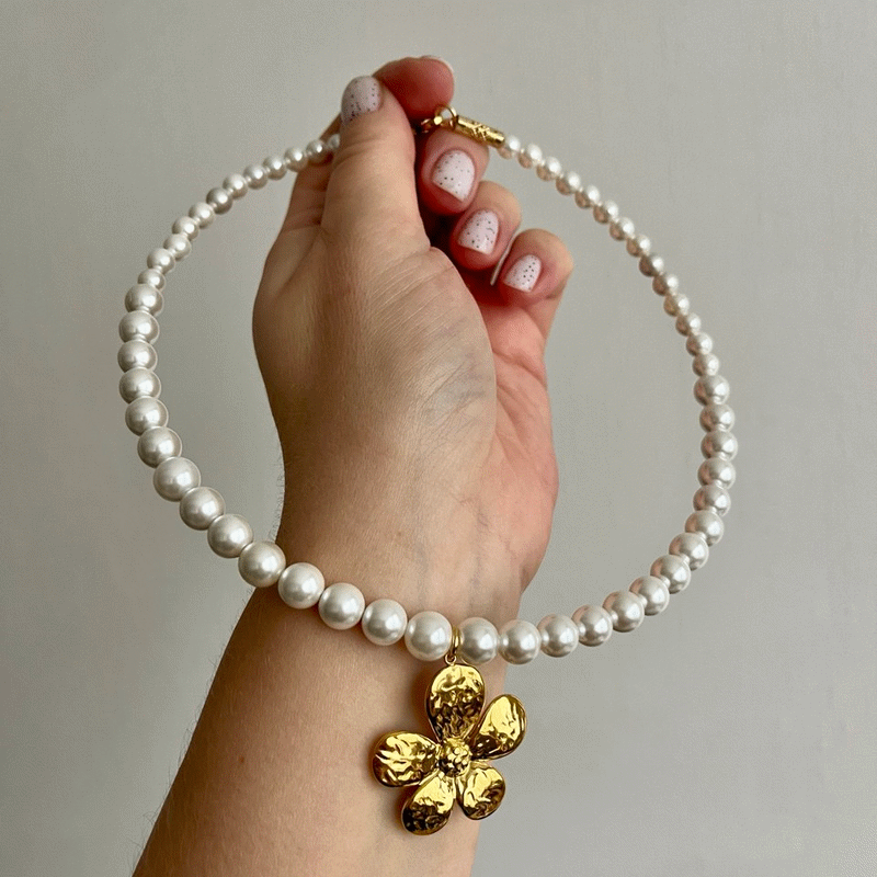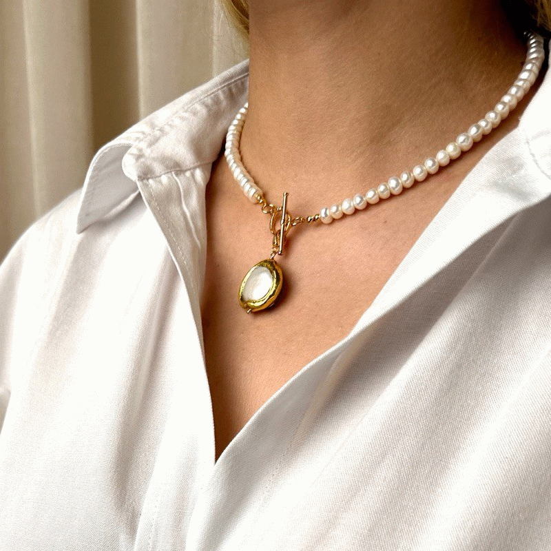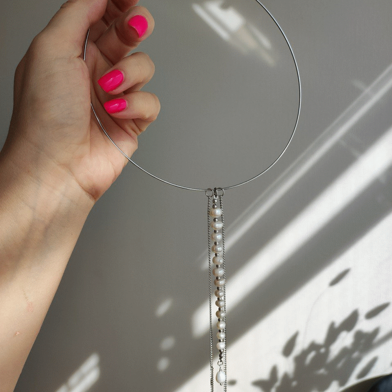 Кольє з перлин Майорока на жорсткій основі з підвіскою лунниця