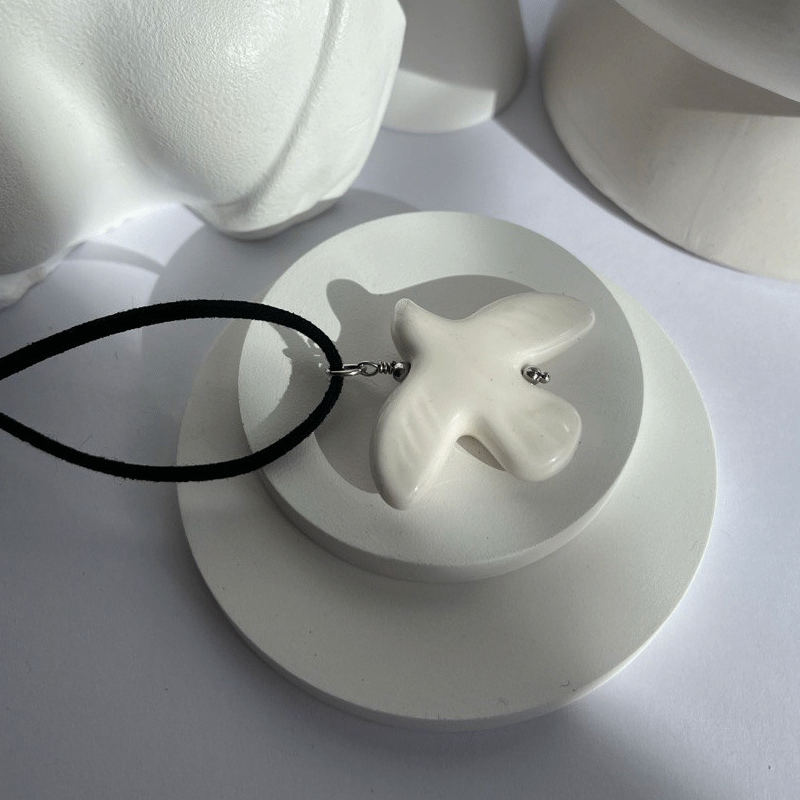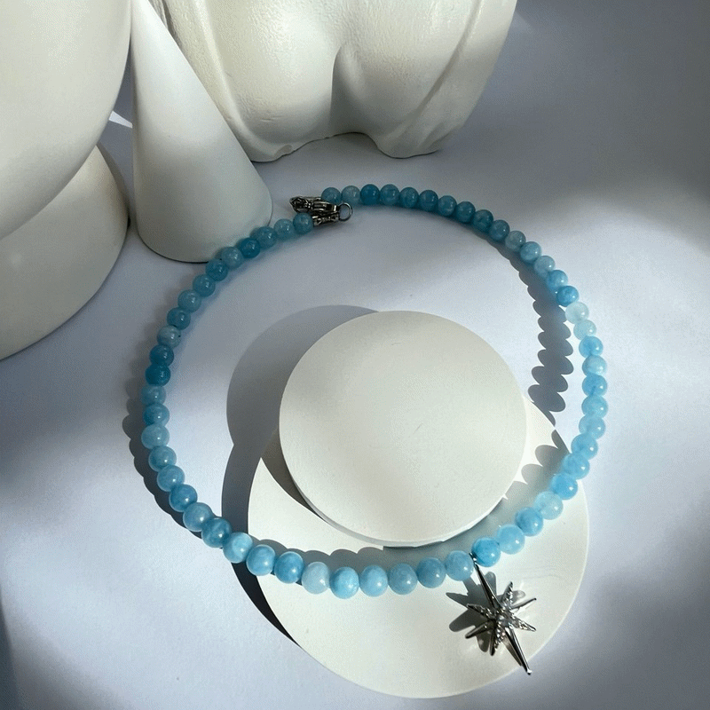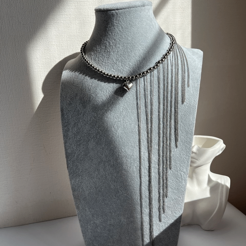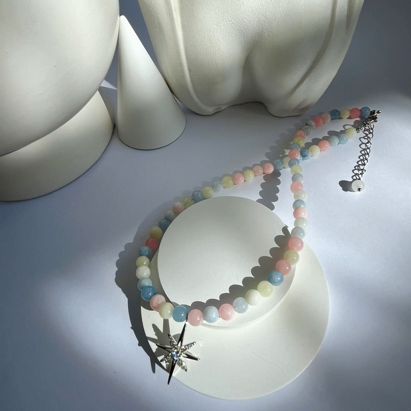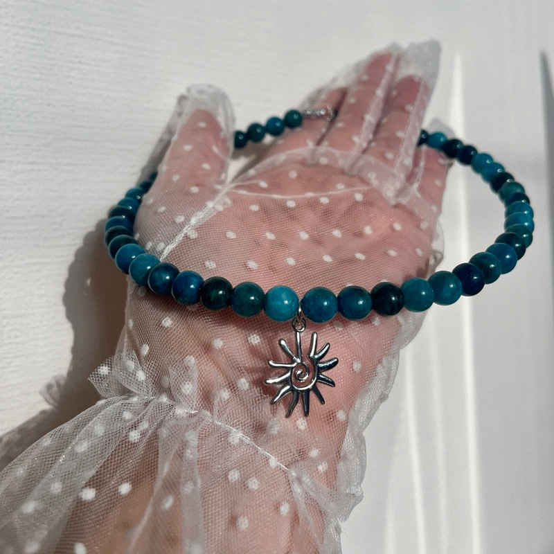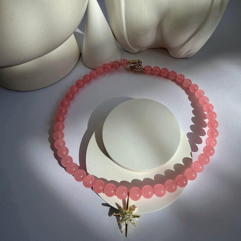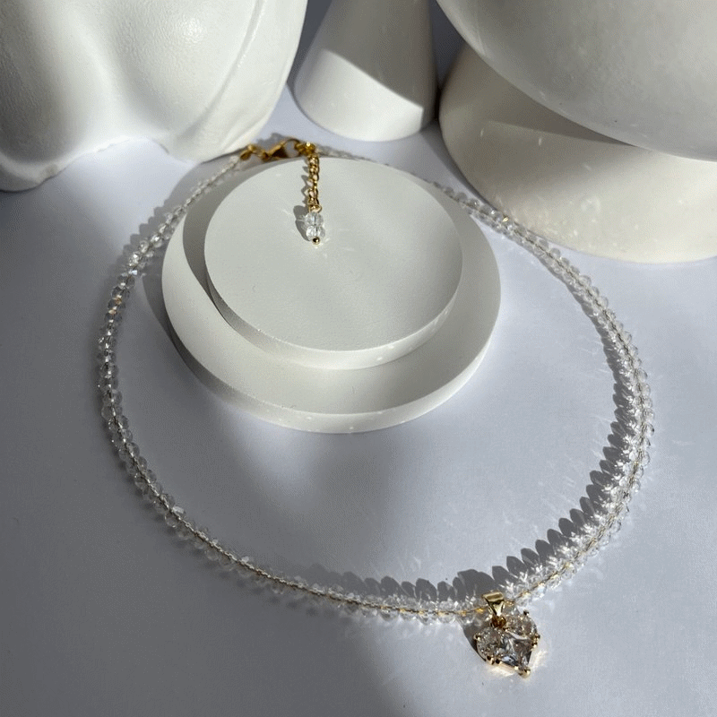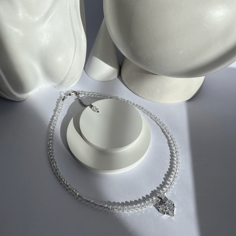Кольє з перлин Майорока на жорсткій основі з підвіскою лунниця