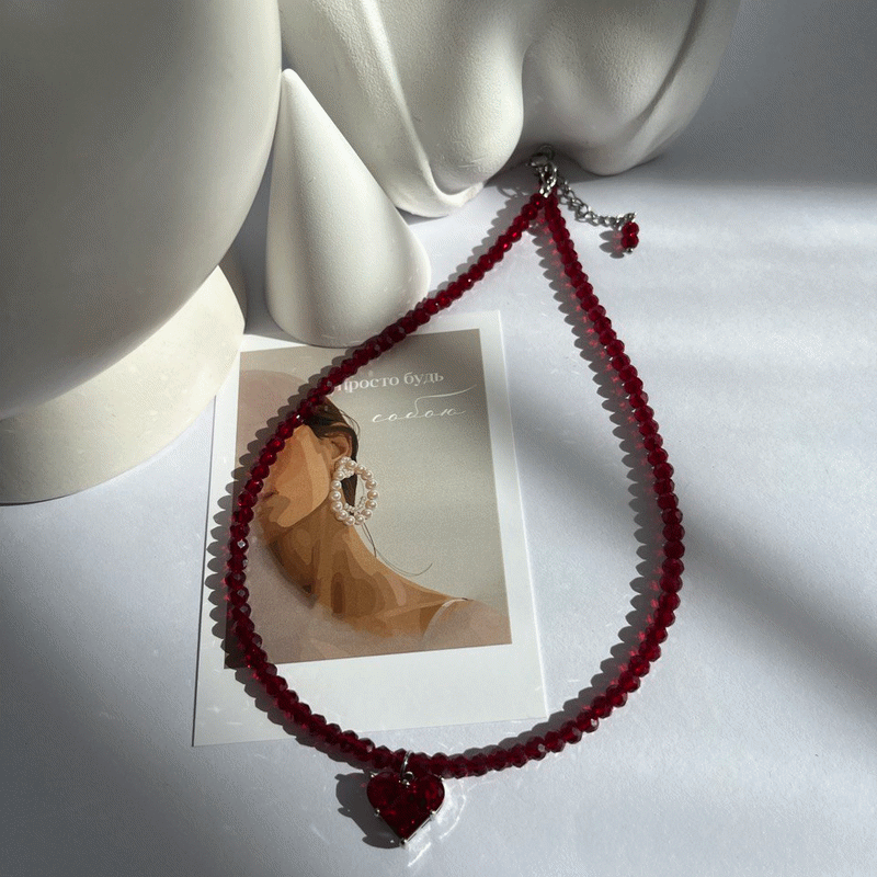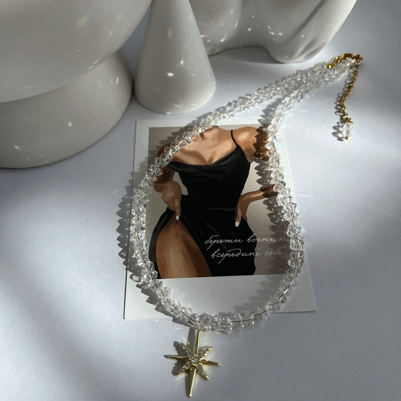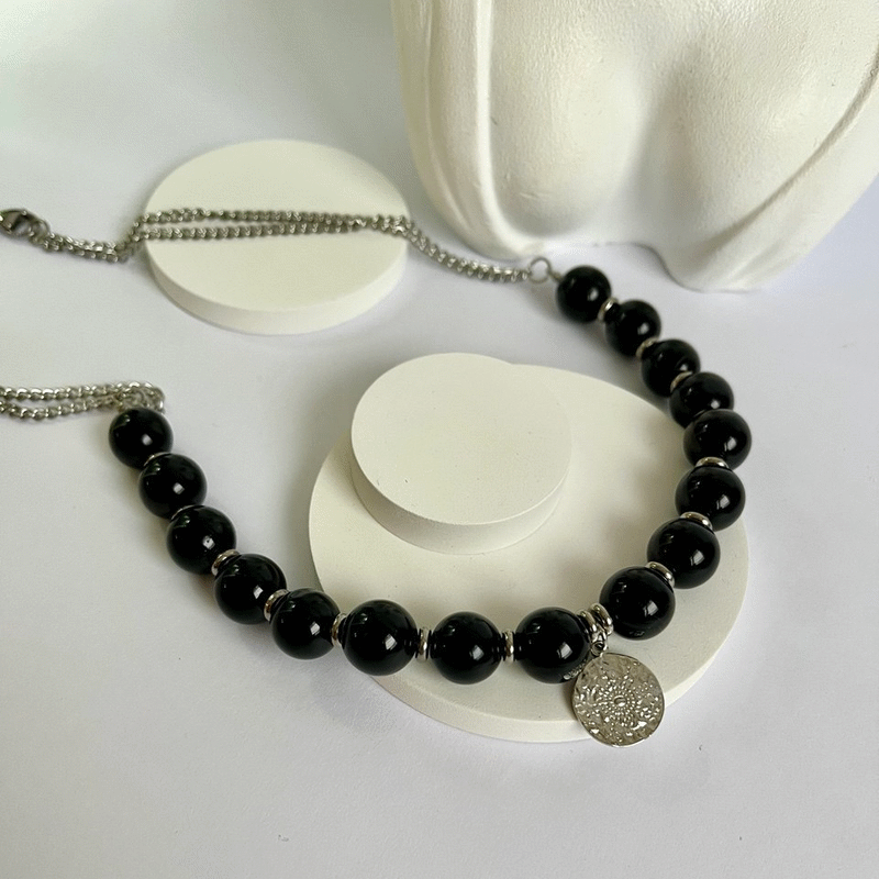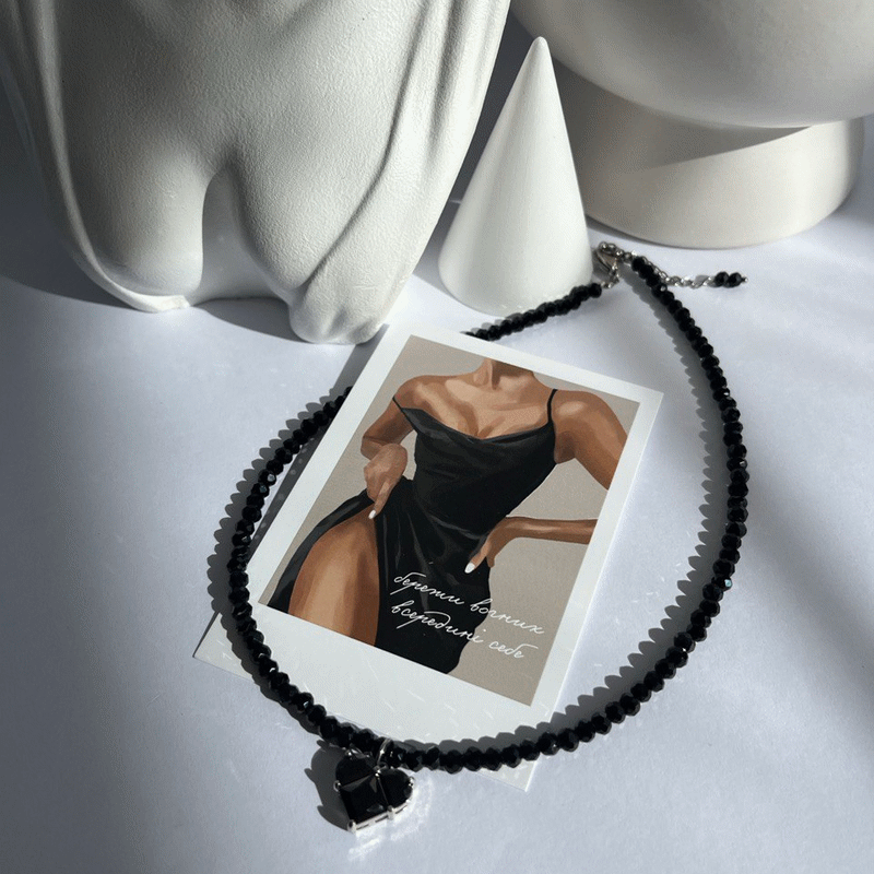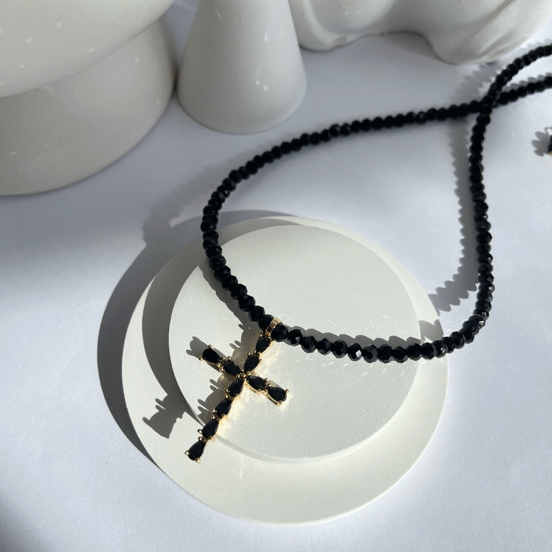 Кольє з чорного ювелірного скла з підвіскою хрестик