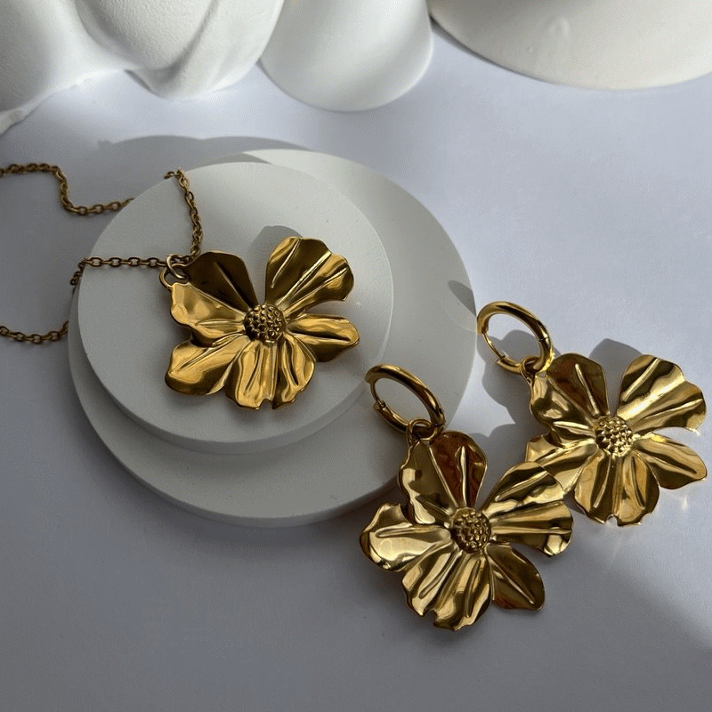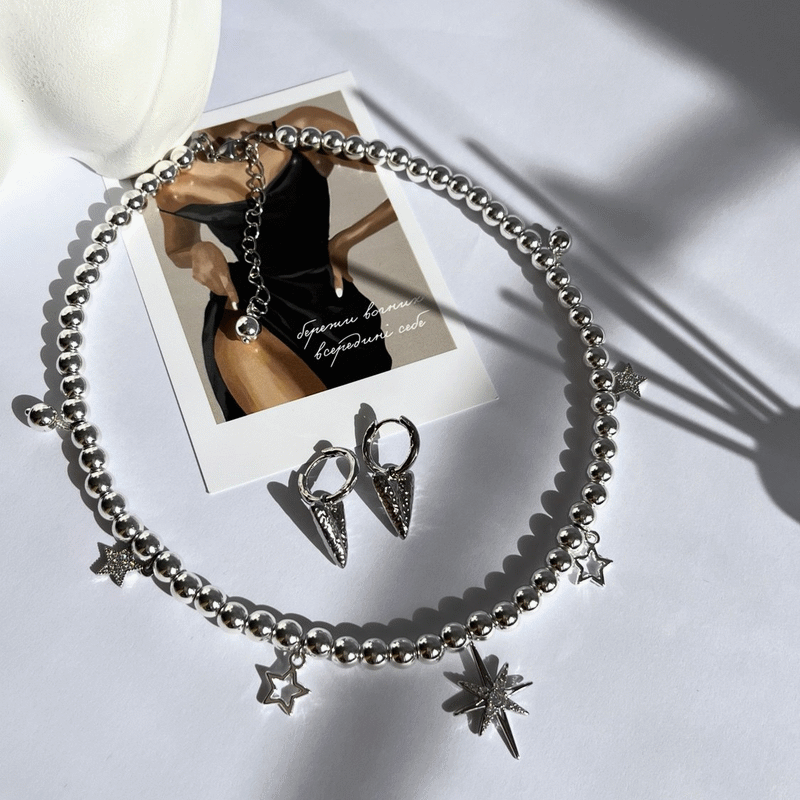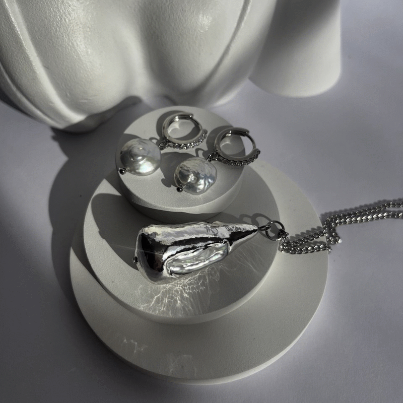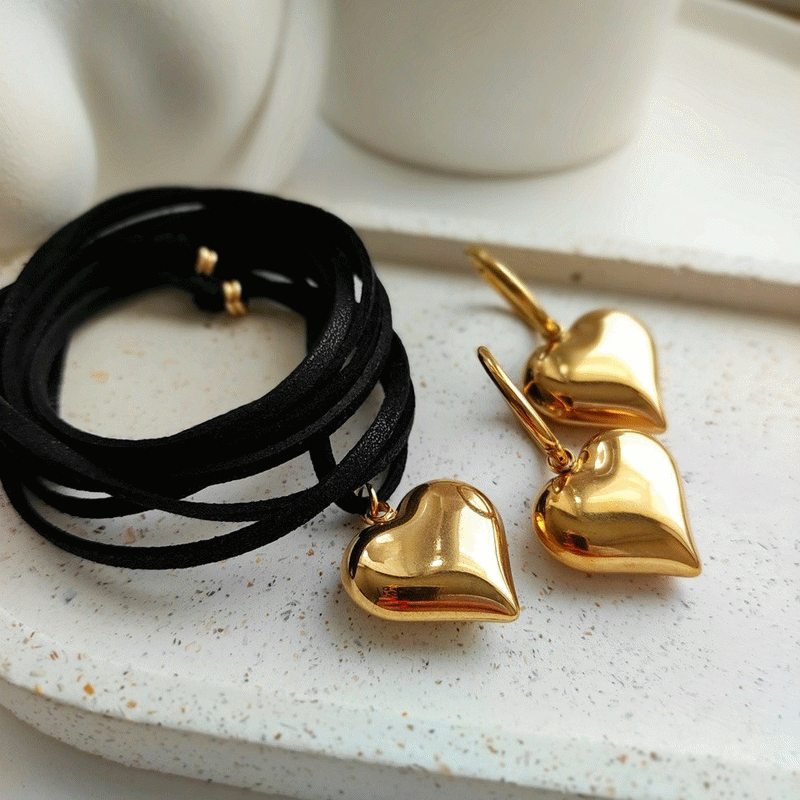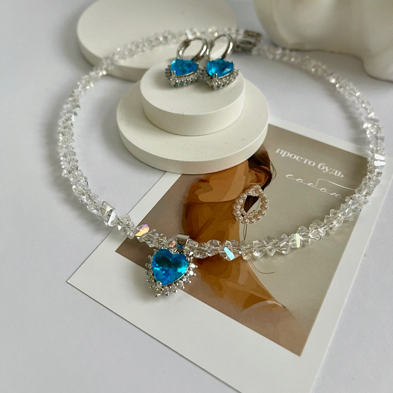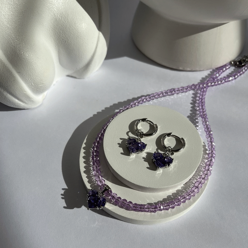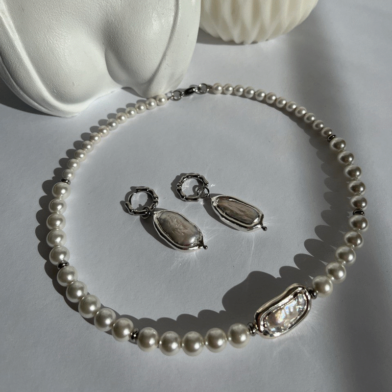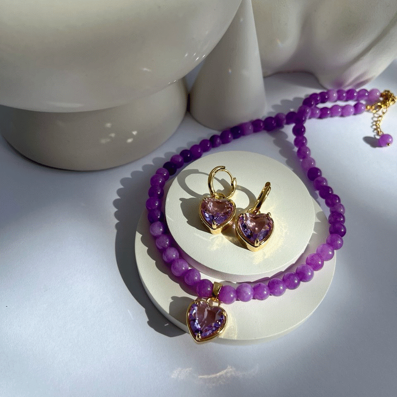 Набір кольє з натуральних перлин та сережки з підвісками серце